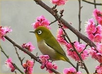 The reason for this incorrect belief of mine was simple: where I live, these birds are heard (and seen) only in February and March, during the season when ume, the Japanese plum blossoms, are in bloom.