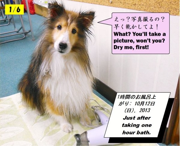 実用英検があることが分かっていましたから、前日の12日(土)、深夜にヨッシーと入浴…ドライヤーでおめかしのスナップです。