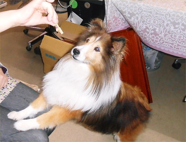 忙中閑に、エリーに大好物の「焼き芋」をあげて一息つきました。