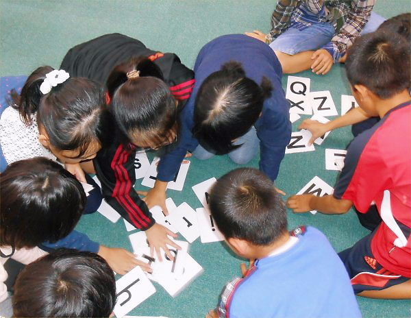 Yoshy is able to have LL students play lots of games with joy e.g. by only alphabet-cards, however, never get above myself ever!