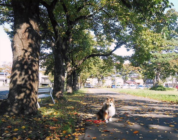 It was first Indian summer. I gave the stuffed dolls presented by Ms. I an airing. The dog is our pet, Erie.
