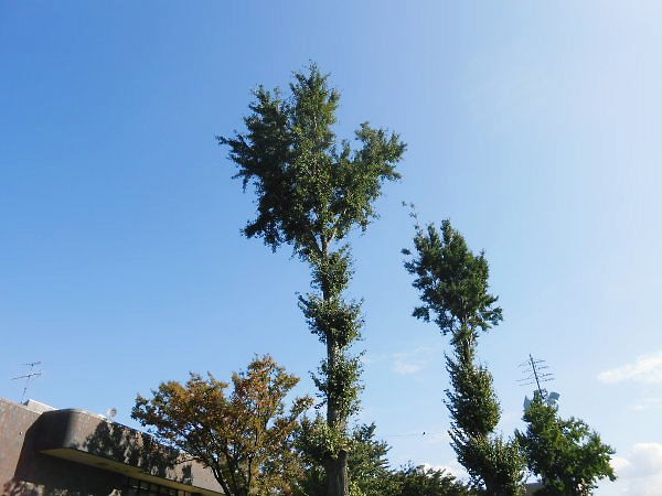 銀杏のギン吉2兄弟 (手前)、ギラ子 (奥)の3本に触って話しかけたら、「豪雪になっても、ケセラセラ!」と言っています。