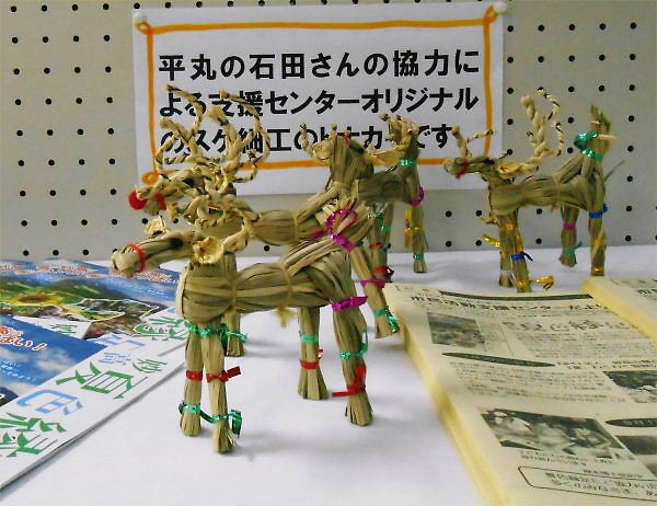 勤研センター・ロビーに、「スゲ細工:トナカイ」が展示してありました。LLシホヤ新井教室の「ハロイーン・レッスン」が終わって、次は、「感謝祭」、「クリスマス」…