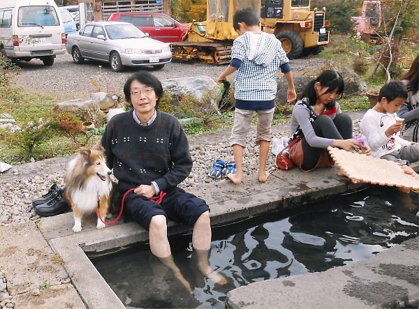 Yoshy took a bath on the ground beside Imori-pond; only my feet was put into it: called Ashi-yu onsen.