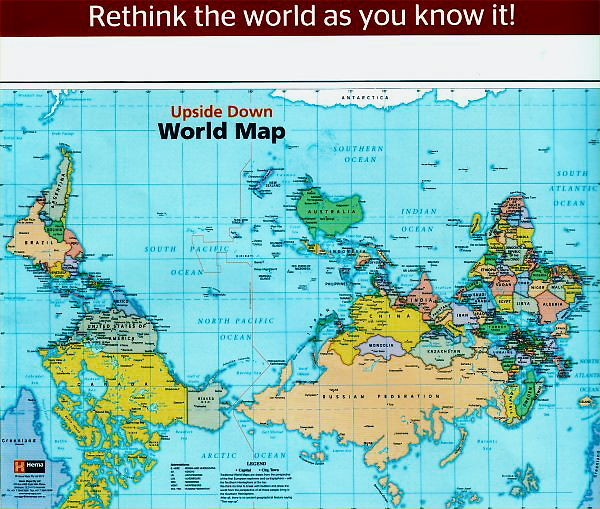 「逆転の発想」…M-PEC会員のY様がオーストラリア旅行で買われた「逆さま世界地図」を眺めながら、LLシホヤ新井教室、M-PEC講座の教案作りへの発想が豊かになりそうです。Y様、新聞もこの地図も、ありがとうございます。