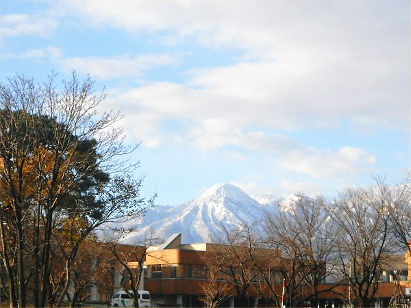 Next pictures were shot on Saturday, November 30th. One is Mt. Myoko (2,454 m) as white as milk; another one is Yoshy’s pet-dog, Erie who is *watching it in silence at the north-gateway of Fureai-Hall.
