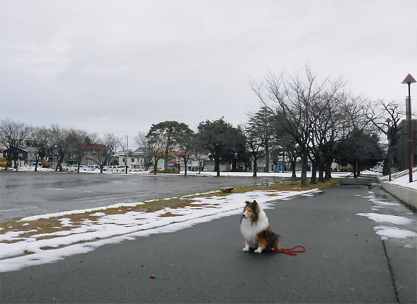 This is a snow-scene taken a picture from Culture Hall in the morning of December 19th (Thu). Though Yoshy’s pet-dog, Erie is a dog, she is sensitive to the cold.