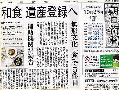 さて、今年は、和食文化が世界遺産に登録されたり、朝ドラでは、「ごちそうさん」が評判だったりしています。