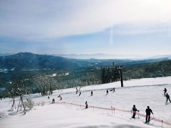脇の*ゲレンデでたくさんの人たちがスキーを楽しんでいました。
