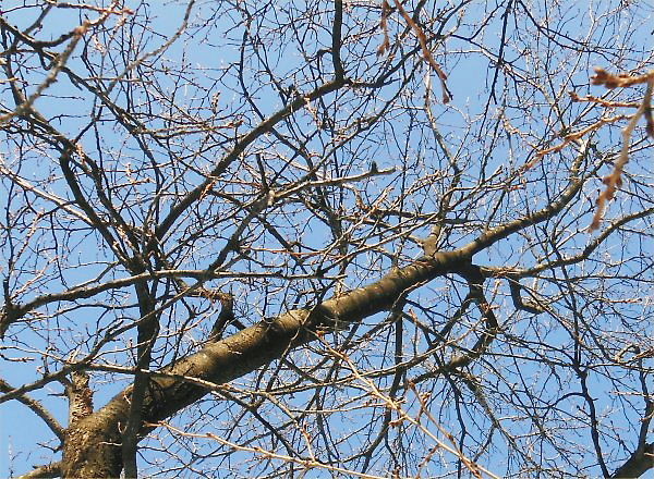 桜の木を注意深く見たら、米粒大の蕾がピンク色でした。「生きている木」なんだと、感動!