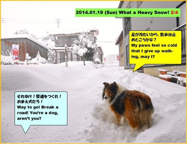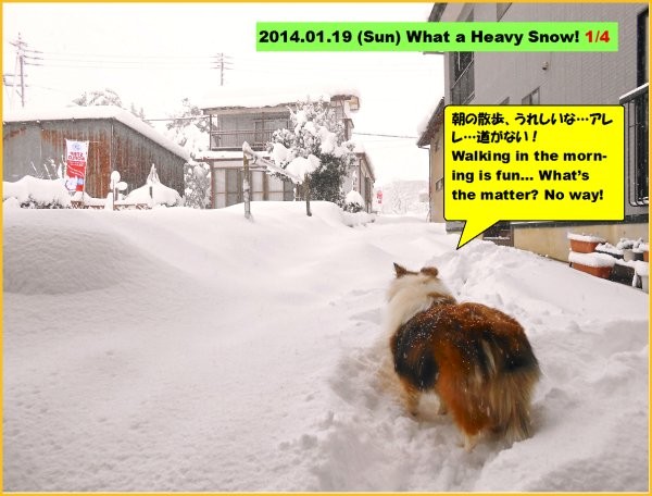1月19日(日)は、夕方まで雪が降り続きました。「エリーが雪にびっくり!:4コマ漫画」は、一番下にございます。