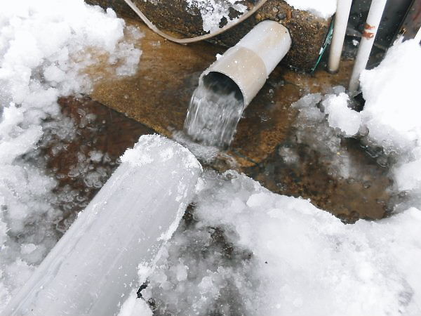 屋根の融雪スプリンクラーからの排水管の出口も一日中解けませんでした。