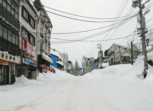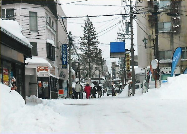 We saw all the walking visitors carrying snowboards; we didn’t see anyone who had ski-sets on the main street, Ginza of Akakura Spa.