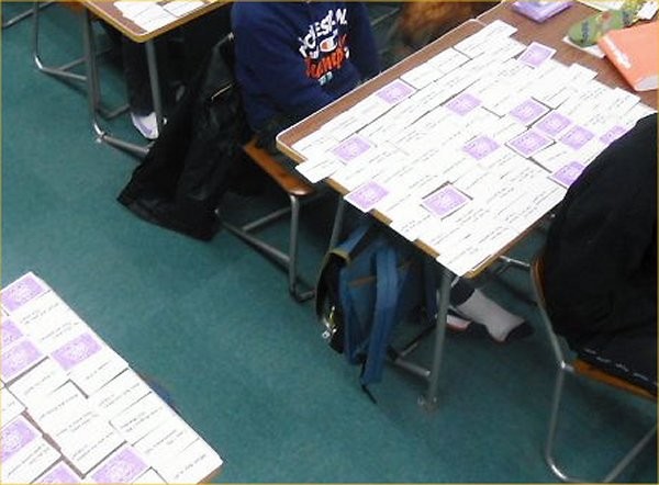 First, Yoshy showed them some sheets of an English newspaper Ms. Y who is one of M-PEC members presented me before; in order to motivate them, saying, “How nice you will be able to quickly read this paper!” Then, Yoshy *had them lay all the “English sentence cards” on each desk.