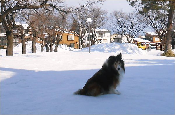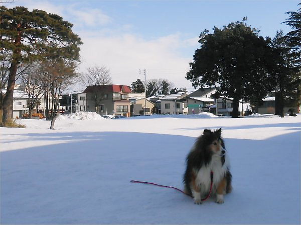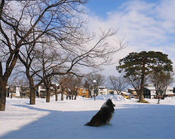 On the morning of Sunday, February 23rd, we could walk on a frozen snow at Cherry Avenue at last; *nevertheless, only Erie could do because she weighs twelve kg.