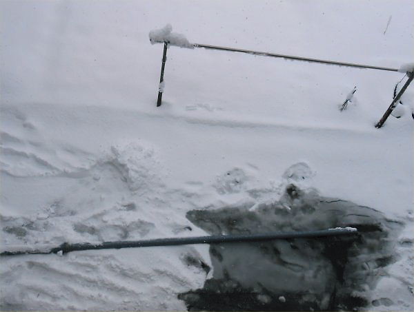 この程度の積雪なら「融雪スプリンクラー」稼働は不要なのですが、教室西口通路の雪を溶かすために1時間くらい稼働しました。
