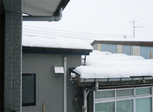 Though we need not move “sprinklers on the roof to melt such amount of snow at all, but I did for about one hour in order to melt snow on the west-doorway of LL Shihoya Arai School.