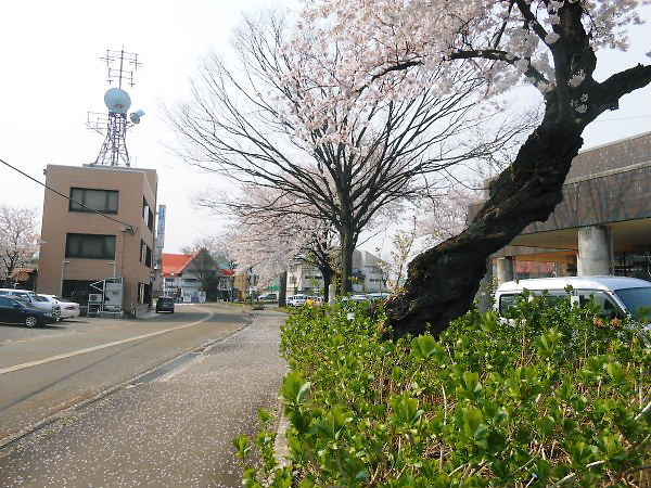 桜並木の花はどんどん散っています。
