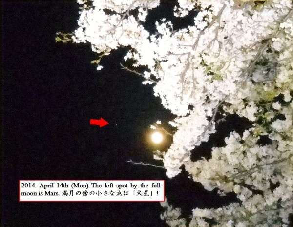 Yoshy miswrote the planet beside the moon in the latest blog; it was not Venus but Mars. Actually I had no idea that it was a total eclipse of the moon; I’m ashamed.