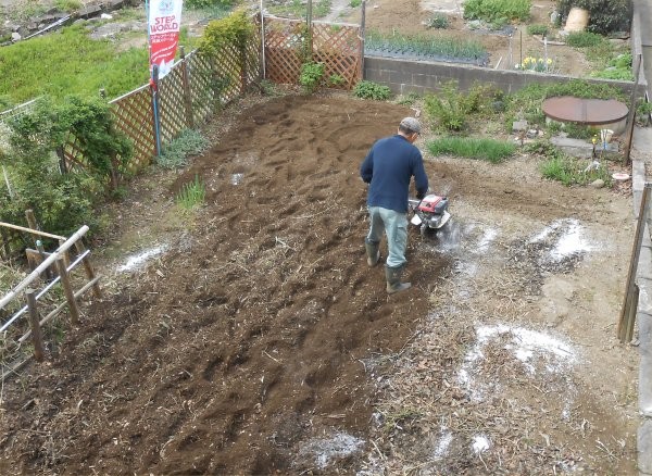 同日9:30 am~11:00ころ、ヨッシーの新井中当時からの同級生のU氏が、今年もLLの畑を耕してくれました。有難う!