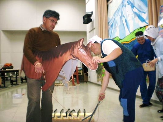 Narrator-2:We call this figure of the Prancer “Haneuma” and its appearance shows us the beginning of the farm work of spring. This story about this Haneuma we’re performing is a little sad.