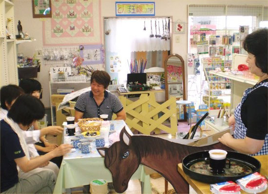 Six members came to Shihoya Bookstore to do on Saturday, August 25th and worked making new props at the corner in there from 2:00 to 5:00 pm.
