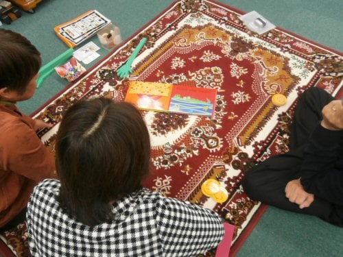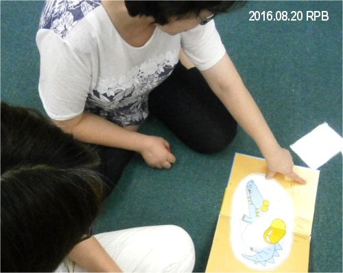 We enjoyed RPB: Reading Picture Books; using a paper-show of “Bridge over the Milky Way”, in which I sometimes asked lots of questions about the story.