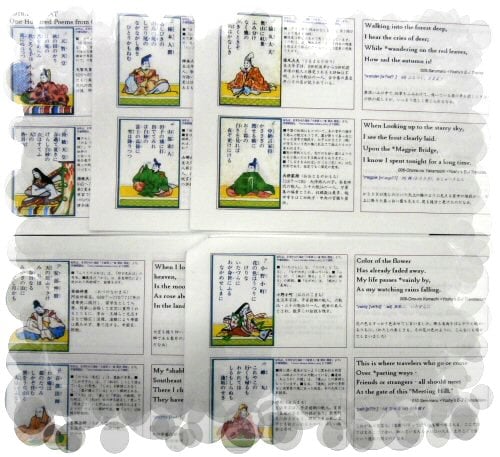 On the face of the card, “classic language or poems of Japanese” is printed and on its back, “its translation into English” is.