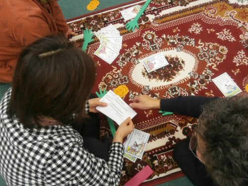 色々な使い方ができます。今回は、「下の句を英語で」朗詠したら、受講者さんたちは、「上の句を日本語か、英語で」言ってから、そのカードをピシャリ!