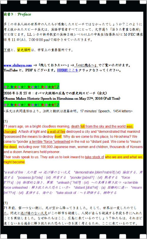 As already announced this YEA here, I explained some parts among all “President Obama’s Historical Speech in Hiroshima”.