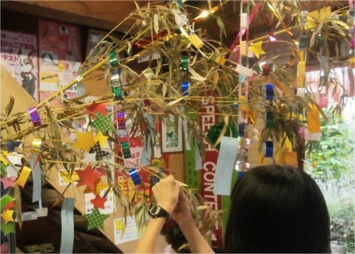 They were *absorbed in making tanzaku, fancy strips of paper. Then…