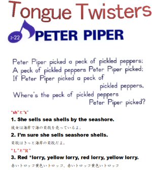 “Tongue Twisters”, as an exercise in *articulation! (As this was very popular last time, we tried them again. I revised the old text into the new one full of easier tongue twisters.)