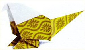 B:「英語で折り紙」:酉年(とりどし)と、天の川の橋になった鵲(かささぎ)にちなんで、小鳥を作りました。七夕飾りに吊るします。