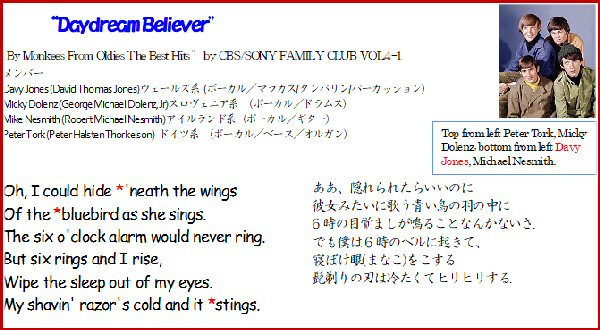 (4) 「♪モンキーズの、デイドリーム・ビリーバー」
