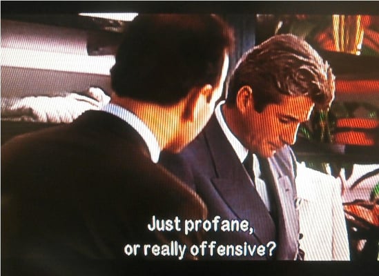 <4b: “Just profane, or really offensive?”:(彼女への接客態度は…)「ごく普通に、それとも徹底的にヨイショしましょうか?」