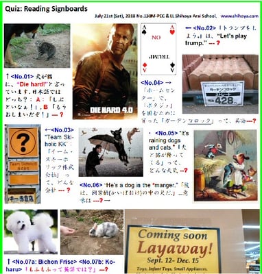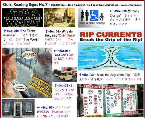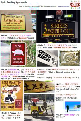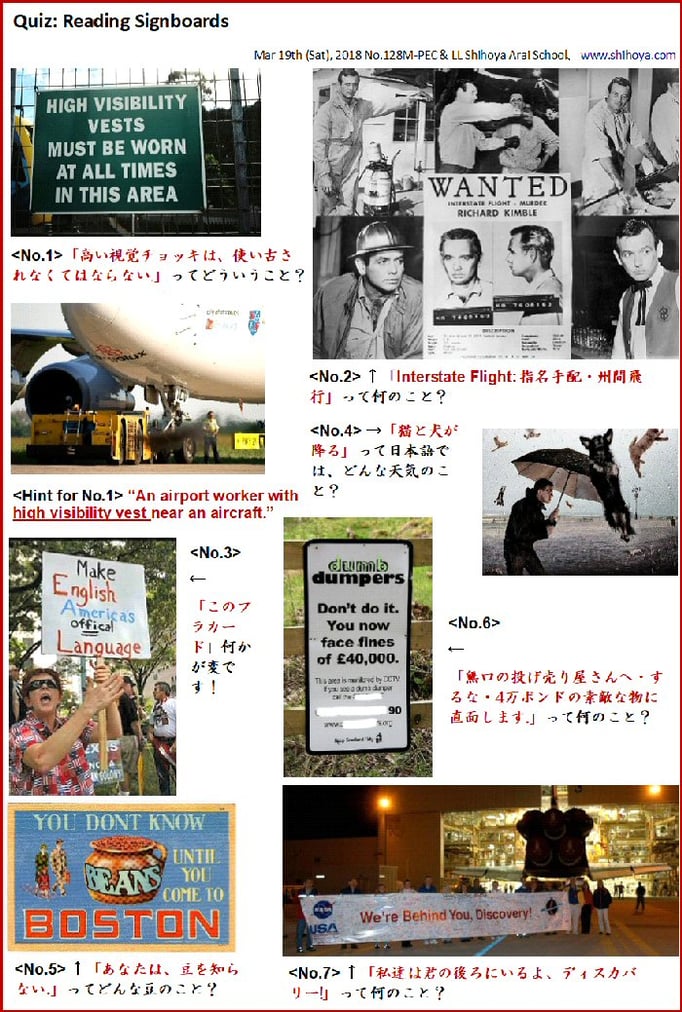 <4f: 「掲示クイズの配布教材」by遠藤由明」無料画像使用: “Yoshy’s original material about signboards” All pictures from フリー画像 Permission to Use. >