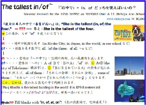 (Extra: 予備) 「最上級:the ~est in/of…の、in, of の区別?」
