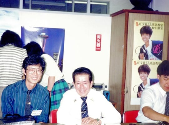 <4db: 1986年9月、J. B. Harris先生の英会話講座の休憩中の談笑: Small chatting during breaks with Mr. James B Harris @ Foundation Japan LL Education Center in Mejiro>