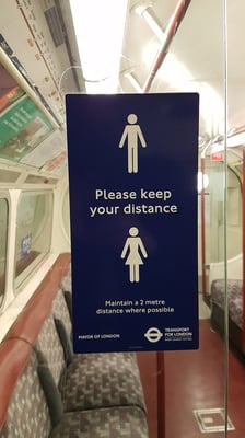 ご参考FYI: ““Maintain a Distance when Travelling On the Bakerloo Line in London” Taken on May 30, 2020; by