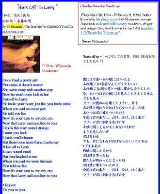 <4aa: “Hats Off To Larry” as a material (和名:花咲く街角) Translated by 遠藤由明>