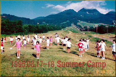 ■ サマースクール(Summer Camp)の、第1回目は、開設年度の1975年夏、「国民休暇村(関山)」での1泊2日でした。1996年度、22回まで続きました。
