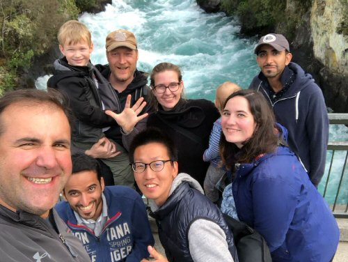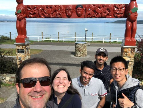 ♦ニュージーランドは北島と南島にわかれていて、ぼくは北島のタウポ(Taupo)という町にいました。琵琶湖と同じくらいの大きな湖があり、釣り、山登り、ラフティングなどアウトドアアクティビティが盛んなところです. 近くのトンガリロ国立公園(Tongariro National Park)はロードオブザリングという映画のロケ地にもなったところです。残念ながら全員は揃いませんでしたが、チリ、フランス、ドイツ、サウジアラビア、中国からのメンバーが集まり、当時の担任だったニュージーランド人の先生の家に泊まりました.