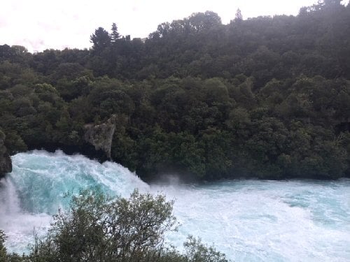 ♦フカ滝はタウポの観光名所です. 滝つぼの近くまでジェットボートでいく、「フカジェット」というアクティビティもあります.