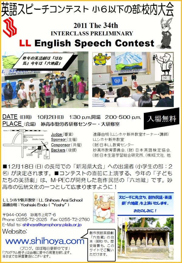 「#34 LLスピーチコンテスト小の部校内大会」 with 「英語劇:六地蔵」がお陰さまで盛況!