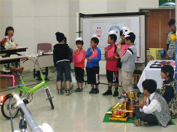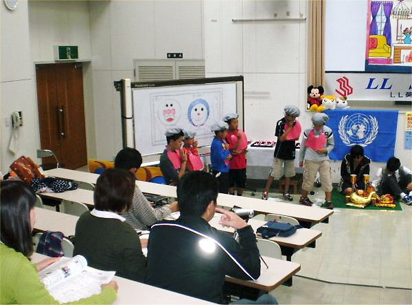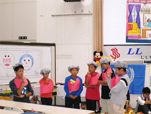 ■10月2日(日)、2:00-4:30 at 勤研センターで、LL生徒は勿論、保護者様、LL卒業生、M-PEC会員…各方面で支えて下さったみなさまのおかげで、70余名の参加を得て、盛況に終了致しました。特に、ヨッシーの分身として、英語劇練習の世話や今日の進行をしてくれた生徒スタッフ:松木雄一郎君 (AA, 高田高2年)、藤田瑞華さん (AA, 高田高2年)、牛木晴海君 (A3, 新井中2年)、天野貴美子さん (A3, 新井中2年)に感謝いたします。