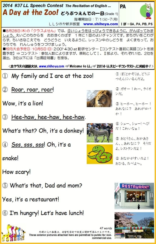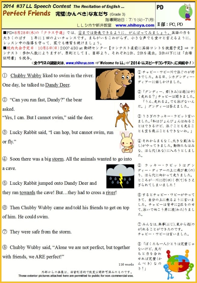 音声ファイル= mp3は、PB,PSクラス以上Yoshyの発音でお聞きいただけます。The sound-file of mp3 recorded by Yoshy is able to listen from PB,PS; scroll down, please. Thank you.