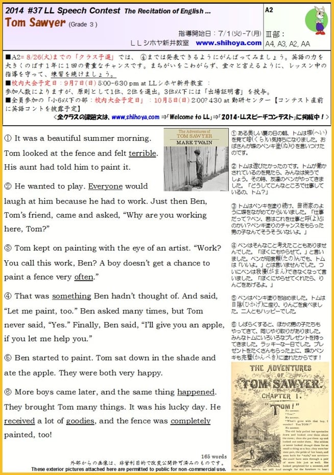 2014年度・スピーチコンテスト課題文(一部)ご紹介:Recitations in the year of 2014