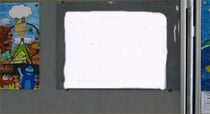 学校の展覧会で。男の子が何もかかれていないキャンバスを見ている。それで、その絵をかいた女の子にたずねる。