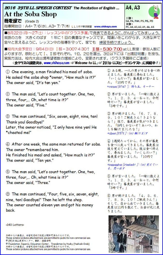 LLシホヤ新井教室 志保屋書店・英語雑学など