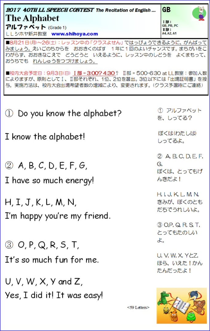 Welcome to:英語教室:LLシホヤ新井教室 募集要項